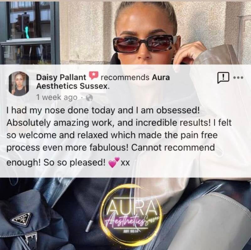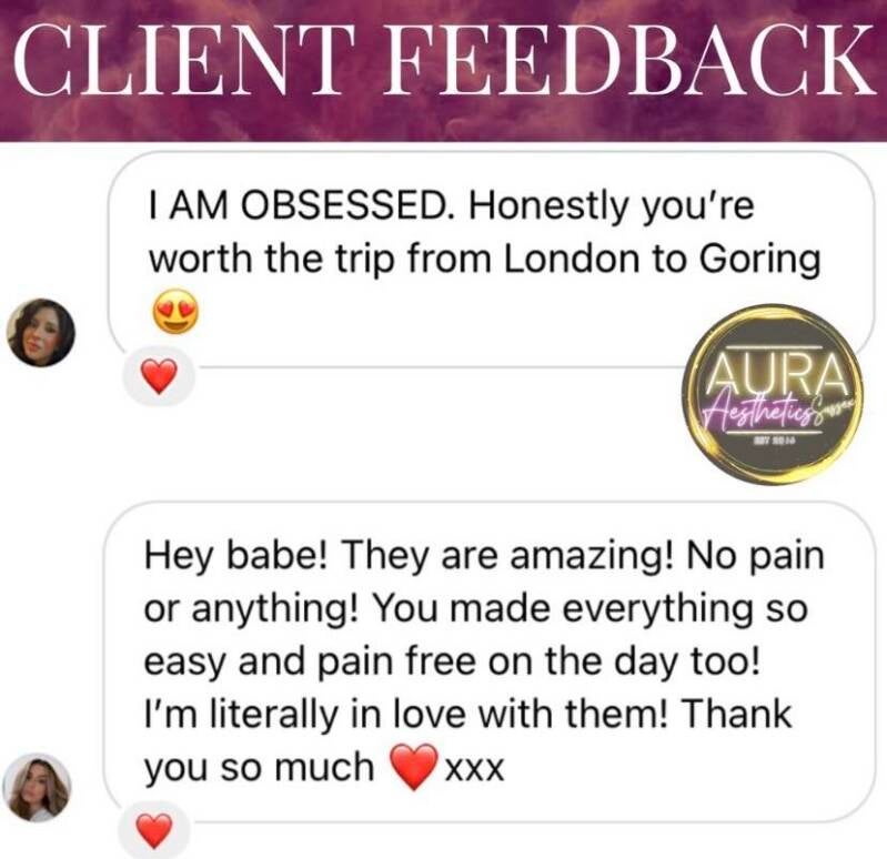 I went to Aura Aesthetics and she's honestly amazing and would highly recommend. I will definitely be going back to her. She makes you feel so comfortable. she knew exactly what would be best for me! - Daisy