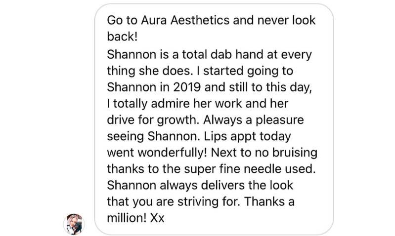 I Was very nervous to get my lips done as this was my first time I had been researching a lot of different places and felt most comfortable coming to Shannon , I thought it was going to be very painful but I was pleasantly surprised with how little pain I personally felt it was not what I expected at all Shannon was so gentle I’m over the moon and will 100% be returning in future highly recommend !!! - Gracie